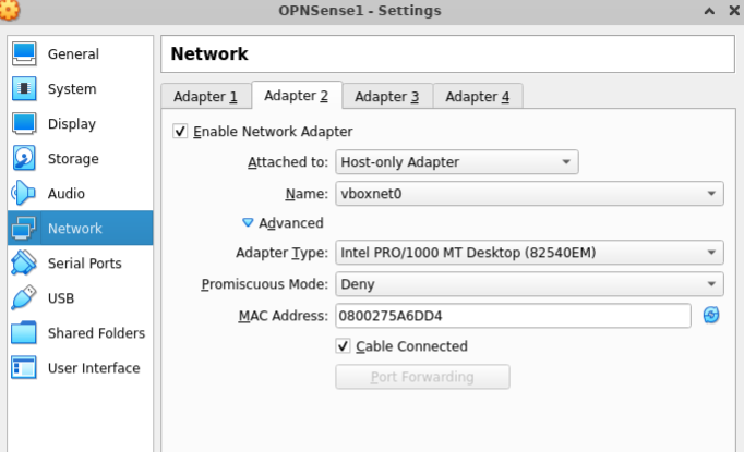 We setup LAN ipv4 address as 192.168.56.2 according to the vboxnet0 ip range that we previously saw.