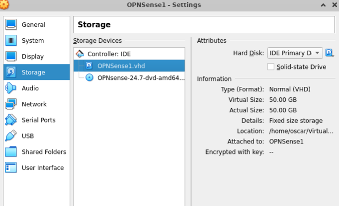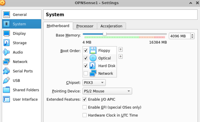 So, on the ladder link, opnsense documentation says we need to setup our virtual machine with the following minimum requirements: