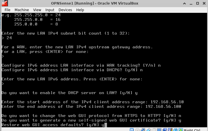 So, basically, after that set of config questions, we are prompted a message telling us that we can access the web GUI interface at http://192.168.56.2