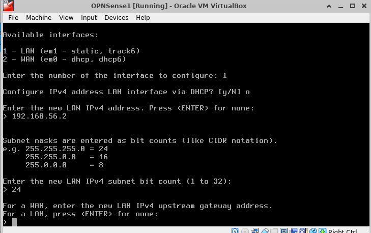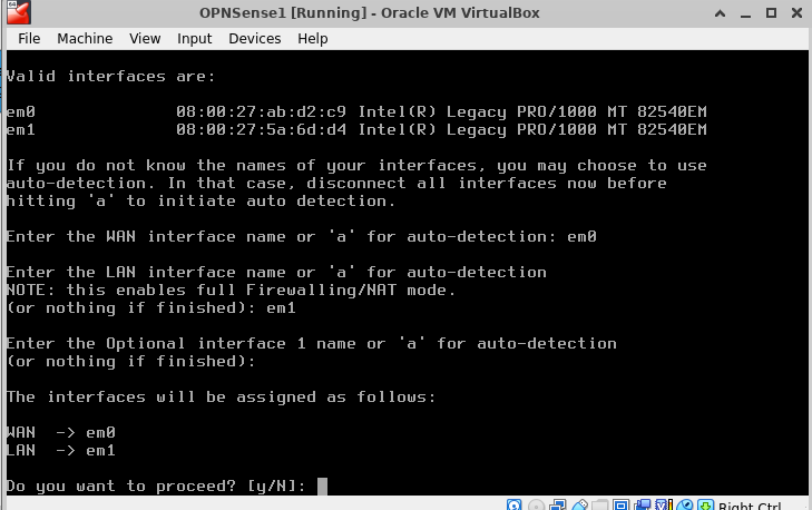 | WAN | em1 | 08:00:27:5a:6d:d4 | vboxnet0 |