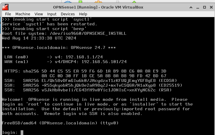 - root:opnsense (Live mode)
