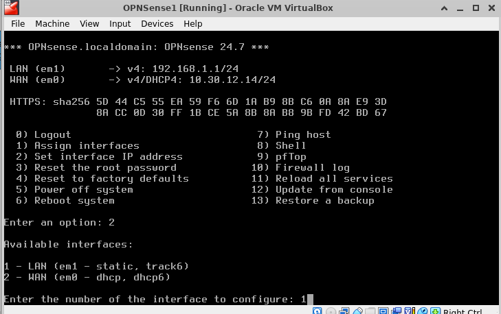Once the interfaces are well assigned, we proceed with setting the interface IP Address