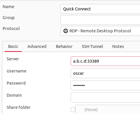 This are Remmina config to access it (of course, I won’t reveal sensible data):